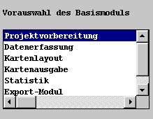 WBBK und PMK sind ArcInfo-basierte AML-Applikationen, die es ermöglichen, die entsprechenden Forstkarten vollständig Menu-geführt zu erstellen. Von der Projektvorbereitung und der Erfassung der Grundlagendaten über die Editierung des Kartenlayouts bis zur digitalen drucktechnischen Ausgabe und der statistischen Auswertung wird der Bearbeiter durch die verschiedenen Arbeitsprozesse geführt und unterstützt. Es werden folgende Basismodule bereitgestellt.